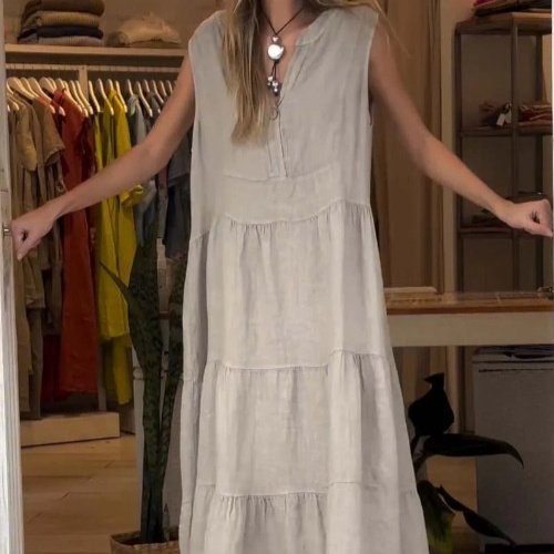 European And American Style Women Cotton Linen Dress Long Dress Women’s Clothing
