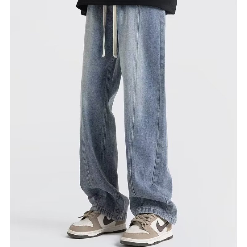 Men’s American-style Drawstring Elastic Waist Jeans